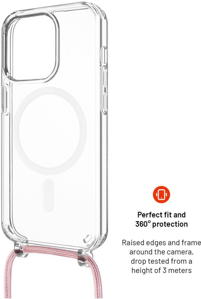Fixed MagPure Neck puzdro s ružovou šnúrkou na krk pre Apple iPhone 17e/16e