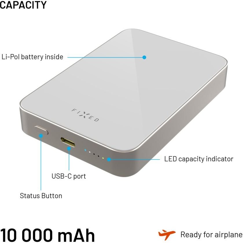 Fixed MagZen 10 Crystal, powerbanka s bezdrôtovým nabíjaním so štandardom Qi2 a podporou MagSafe, 10 000 mAh, titánová