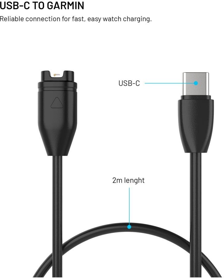 Fixed nabíjací USB-C kábel pre smartwatch Garmin Forerunner/Fenix/Venu/Vívoactive/Instinct, 2m, čierny