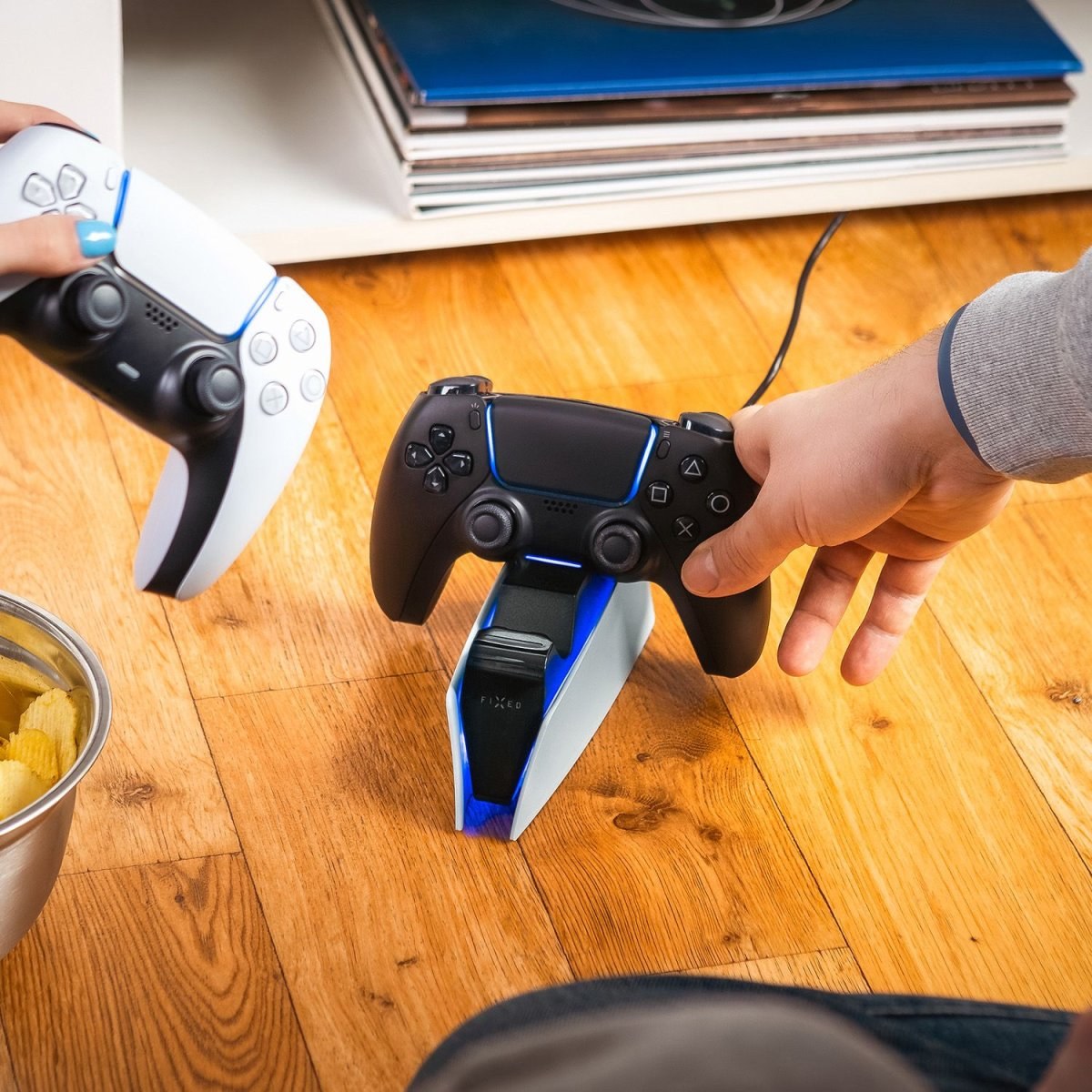 Dobíjacia stanica FIXED DualSense v unikátnom PS5 dizajne predstavuje praktické príslušenstvo pre nabíjanie vašich ovládačov ku konzole PlayStation 5. Dokáže nabiť dva DualSense ovládače súčasne bez nutnosti pripájať ich ku konzole.Po každom hraní stačí ovládače zacvaknúť do stanice a budú vždy plne nabité a pripravené do ďalšej akcie. Akonáhle pripojíte ovládače do doku, okamžite sa spustí nabíjanie doplnené efektívnym modrým podsvietením. Nabíjacie piny navyše dodávajú energiu rýchlejšie ako klasické pripojenie cez USB-C, za 2,5 hodiny je DualSense ovládač plne dobitý.