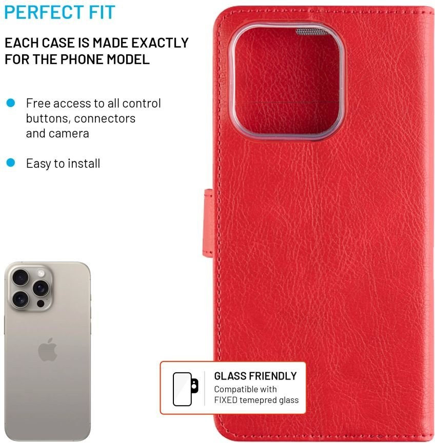 Fixed Opus puzdro typu kniha pre Apple iPhone 16 Pro, červené
