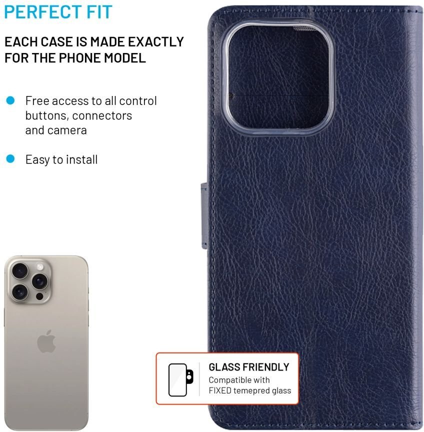 Fixed Opus puzdro typu kniha pre Apple iPhone 16 Pro, modré