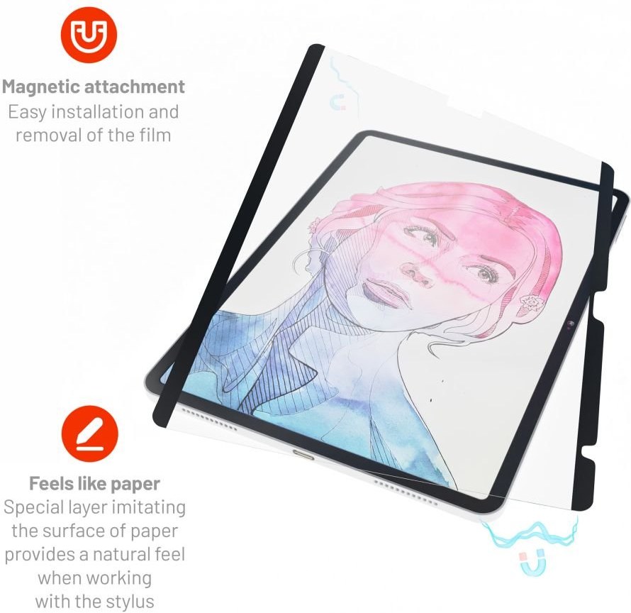 Magnetická ochranná fólia FIXED PaperFilm Screen Protector so špeciálnou povrchovou úpravou imitujúcou povrch papiera je navrhnutá priamo pre váš iPad. Magnety umožňujú opakované použitie fólie, ktorú je možné podľa potreby ľahko pripnúť či zložiť bez toho, aby vytvorila nevzhľadné vzduchové bubliny. Je tenšie ako tvrdené sklo, a tak vždy perfektne splynie s obrazovkou a dokonale ochráni displej pred škrabancami. Neznižuje reakciu dotyku na displej, ani neobmedzuje prednú kameru či Face ID. Dá sa aplikovať aj na iné ochranné sklá či fólie a bez problémov ju možno používať spolu s tabletovými puzdrami. Či už budete kresliť alebo písať, bude to rovnako prirodzené, ako na skutočnom papieri.Vlastnosti