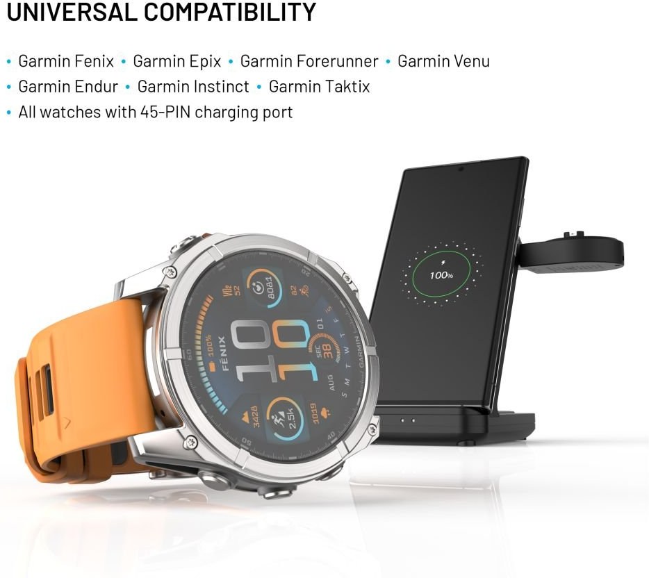 odnímateľný nabíjací adaptér pre hodinky Garmin, stojan s bezdrôtovým nabíjaním 3v1