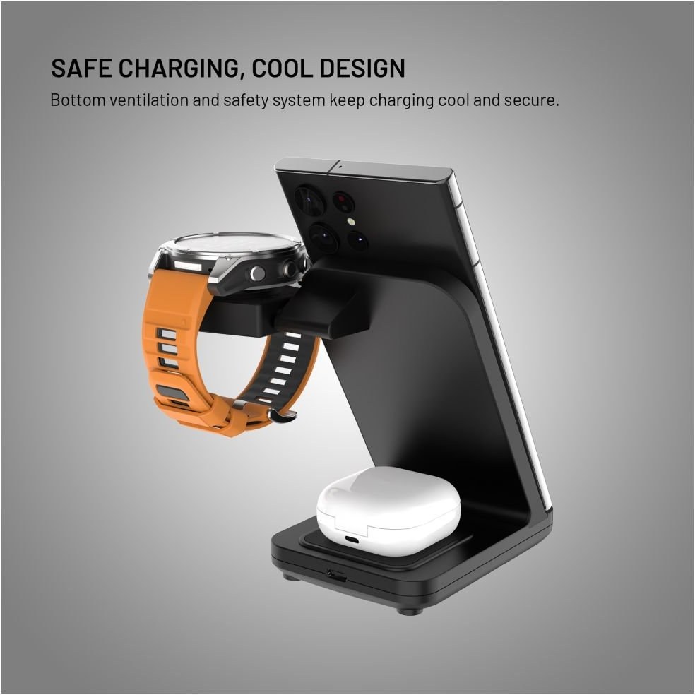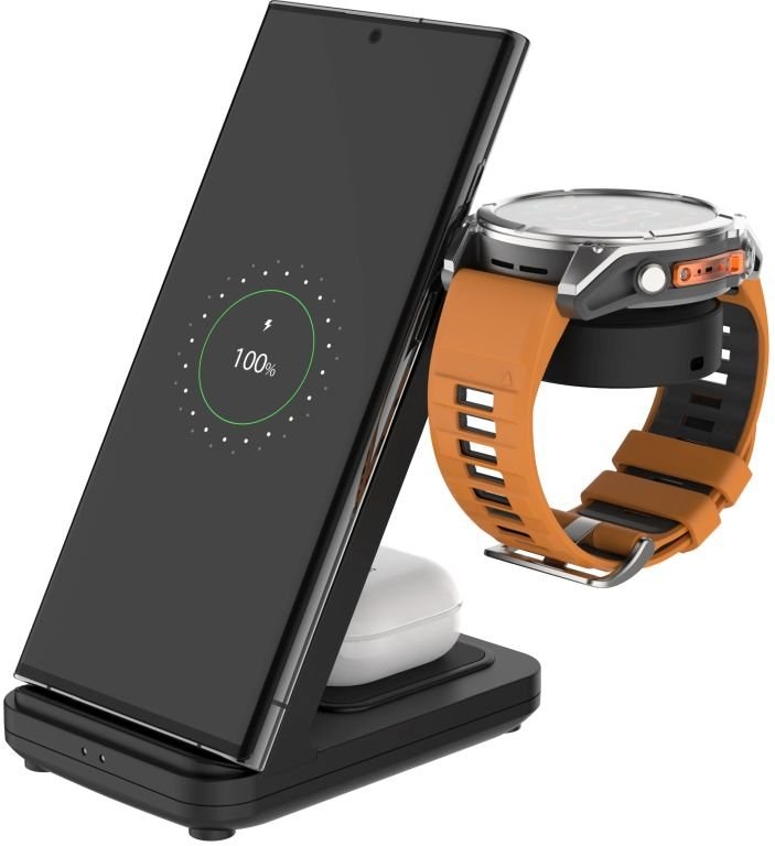 - stojan s bezdrôtovým nabíjaním 3v1- hlavná nabíjacia plocha pre telefón