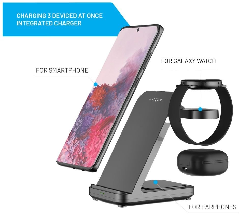 Fixed Powerstation stojan pre Samsung s bezdrôtovým nabíjaním až pre 3 zariadenia, 15W+5W+2.5W, čierny, (rozbalené)