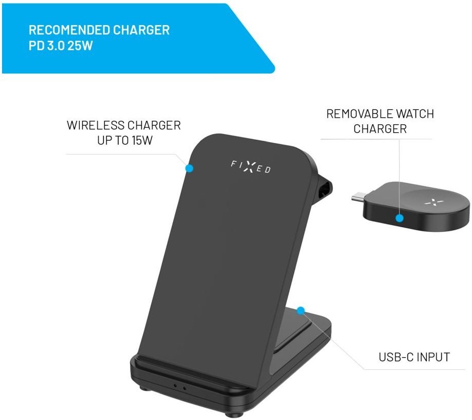 Fixed Powerstation stojan pre Samsung s bezdrôtovým nabíjaním až pre 3 zariadenia, 15W+5W+2.5W, čierny
