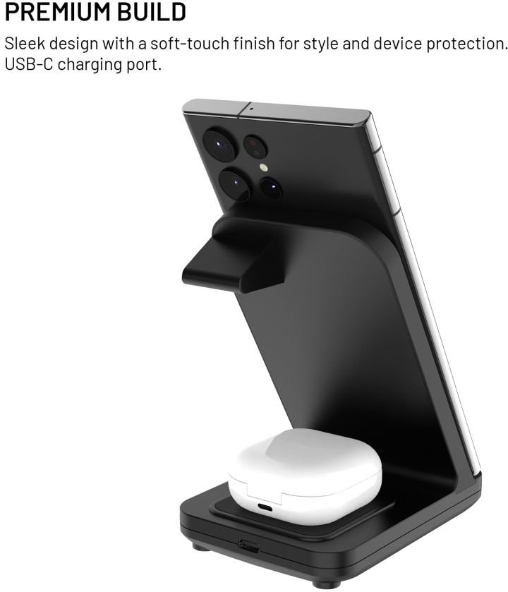 - stojan s bezdrôtovým nabíjaním 3v1- hlavná nabíjacia plocha pre telefón