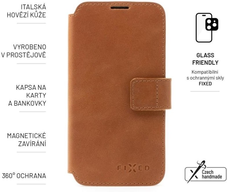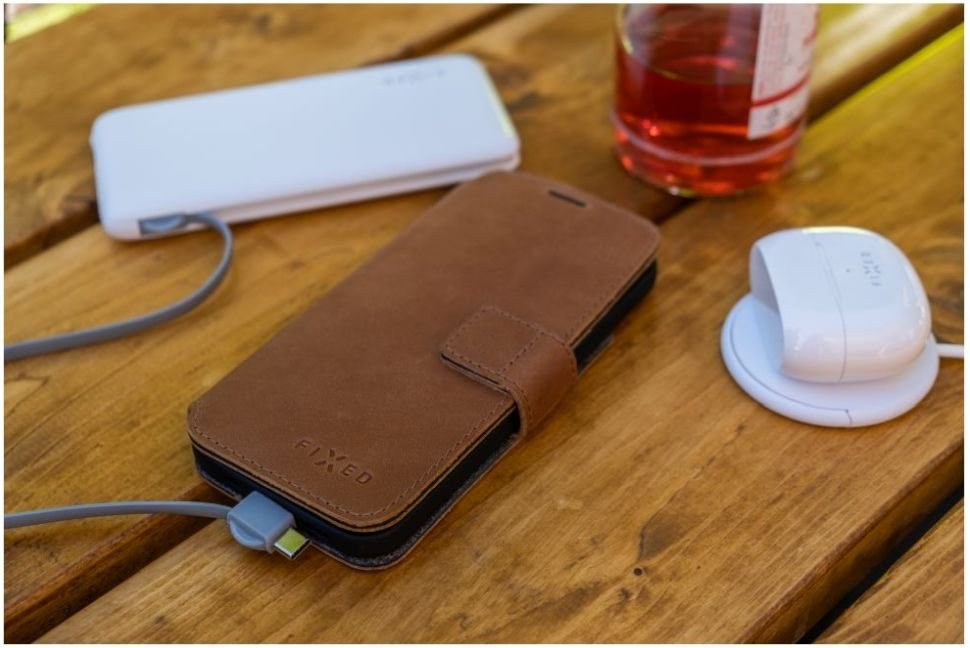 Ručne vyrobené puzdro z pravej hovädzej kože FIXED ProFit predstavuje elegantný a originálny doplnok pre váš mobilný telefón. Ochráni ho pred možným poškodením a zároveň poskytne dostatok miesta na doklady, kreditnú kartu aj pár bankoviek. Puzdro ProFit je starostlivo navrhnuté presne na mieru danému modelu telefónu, vnútorná silikónová vanička dokonale kopíruje tvar zariadenia a ponecháva voľný prístup ku všetkým ovládacím tlačidlám, konektorom aj fotoaparátu na zadnej strane. Predná odklápacia časť bezpečne chráni displej a je istená zatváraním na magnet. Po otvorení puzdra nájdete na vnútornej strane dve vrecká na kreditné karty a väčšie vrecko na bankovky.Kúzlo pravej kože