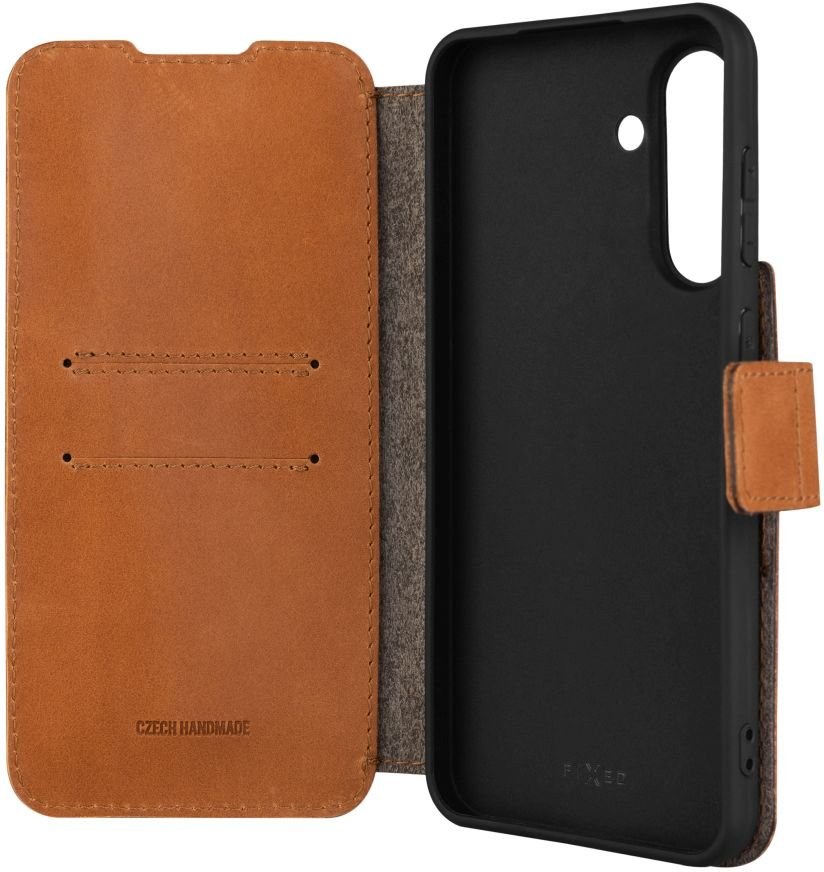 Ručne vyrobené puzdro z pravej hovädzej kože FIXED ProFit predstavuje elegantný a originálny doplnok pre váš mobilný telefón. Ochráni ho pred možným poškodením a zároveň poskytne dostatok miesta na doklady, kreditnú kartu aj pár bankoviek. Puzdro ProFit je starostlivo navrhnuté presne na mieru danému modelu telefónu, vnútorná silikónová vanička dokonale kopíruje tvar zariadenia a ponecháva voľný prístup ku všetkým ovládacím tlačidlám, konektorom aj fotoaparátu na zadnej strane. Predná odklápacia časť bezpečne chráni displej a je istená zatváraním na magnet. Po otvorení puzdra nájdete na vnútornej strane dve vrecká na kreditné karty a väčšie vrecko na bankovky.Kúzlo pravej kože