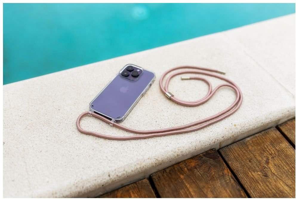 Fixed Pure Neck puzdro s ružovou šnúrkou na krk pre Apple iPhone 15