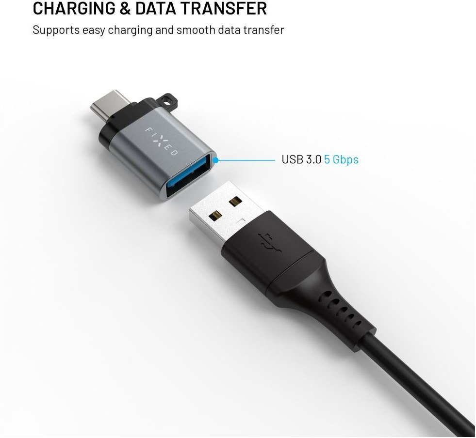 Pomocí praktické redukcia FIXED Link môžete upraviť svoje zariadenia s konektorom USB-A tak, aby išla pripojiť aj do konektora USB-C.Je vhodná ako pre nabíjanie, tak pre rýchly prenos dát a predstavuje tak ideálny doplnok pre pripojenie klávesnicou, myšou, externých diskov, flashdiskov, USB 3.0 hubov aj mobilných zariadení k vášmu MacBooku alebo inému zariadenia s USB-C konektorom. Vďaka modernému USB 3.0 podporuje redukcia rýchly prenos dát až 5Gbps, 10 x rýchlejší ako u klasického USB portu.