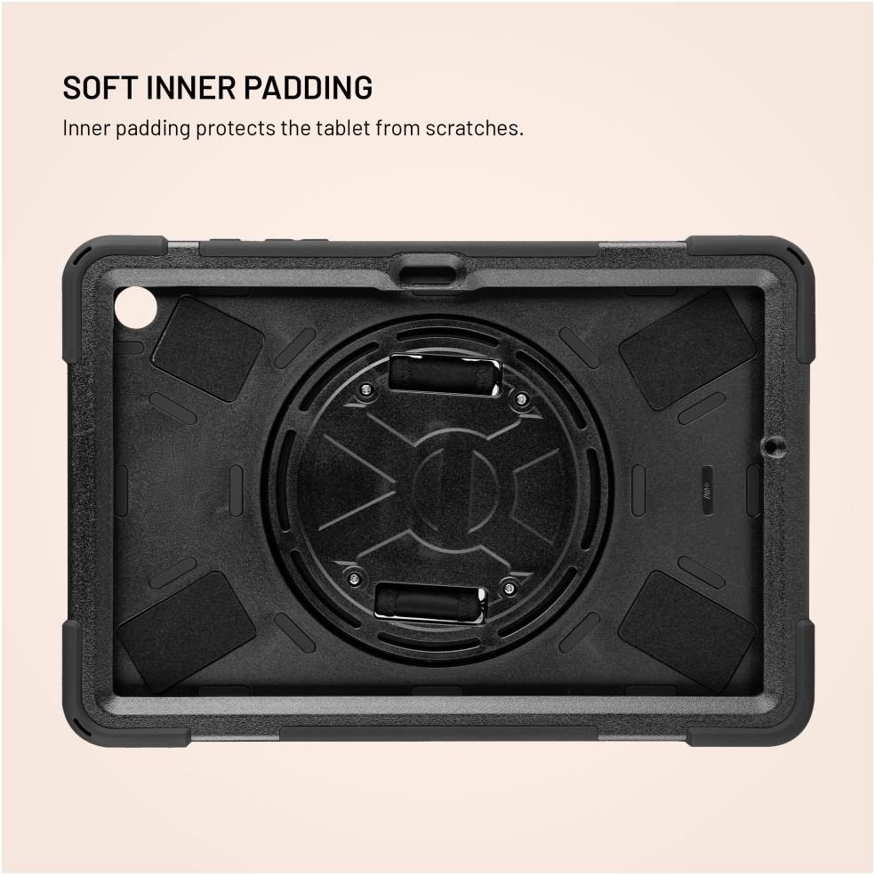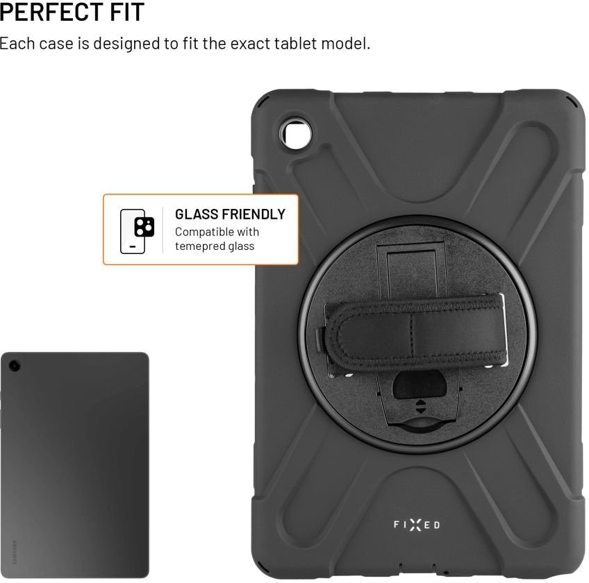 Extra odolné puzdro FIXED Rugged Tab je navrhnuté pre maximálnu ochranu tabletu, ktoré bez problémov odolá pádom, nárazom aj každodennému opotrebovaniu. Zosilnená konštrukcia rohov a bokov spoľahlivo absorbuje otrasy, zatiaľ čo vyvýšené okraje displeja chránia proti poškodeniu pri položení čelnou stranou dole. Vnútorné silikónové polstrovanie poskytuje dodatočné tlmenie nárazov a ochranu tabletu. Na zadnej strane puzdra sa nachádza otočná rukoväť, ktorá výrazne uľahčuje držanie a manipuláciu s tabletom. Rukoväť je možné otáčať o 360 °, takže si ju ľahko nastavíte do ľubovoľnej pozície a pomocou suchého zipsu si opasok rukoväte prispôsobíte akejkoľvek veľkosti ruky. Rukoväť zároveň slúži ako praktický stojan – stačí ju vyklopiť a tablet stabilne postaviť do horizontálnej polohy, ideálny na sledovanie videí, videohovory alebo prácu na cestách. Súčasťou balenia je tiež odnímateľný a nastaviteľný popruh, ktorý je možné pripevniť do ľubovoľného rohu puzdra a umožňuje tak pohodlné nosenie cez rameno alebo okolo krku. Puzdro je navyše vybavené slotom pre stylus, ochranou konektorov a vďaka presnému spracovaniu je plne kompatibilný aj s tabletmi opatrenými ochranným sklom. FIXED Rugged Tab poskytuje maximálnu ochranu tabletu, či už ste na stavbe, v teréne alebo na cestách.Vlastnosti