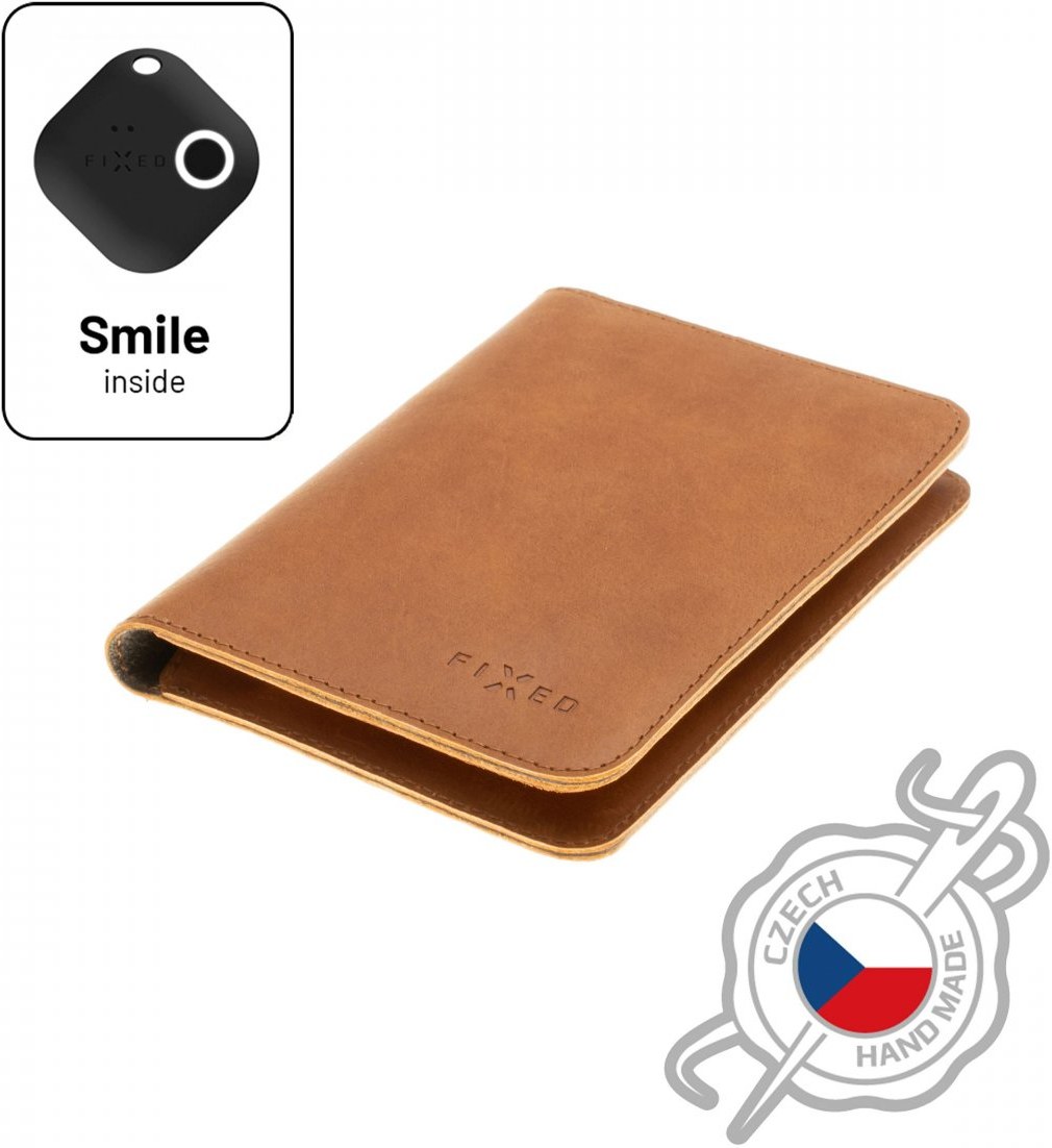 Fixed Smile Passport kožená peňaženka so smart trackerom Fixed Smile PRO, veľkosť cestovného pasu, hnedá
