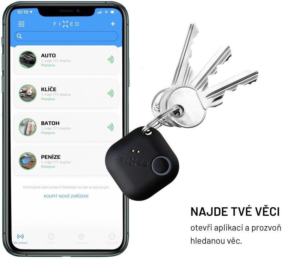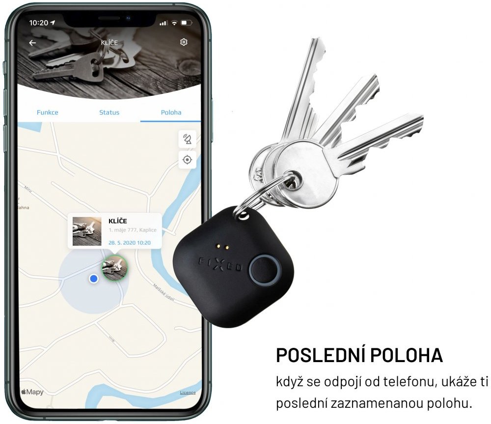 - vaše hlídané předměty se zobrazují na mapě v aplikaci FIXED Smart (spolupracuje s Apple Maps u iOS a Google Maps u Android)