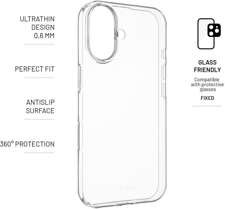Fixed Story Slim ultratenký TPU gélový kryt pre Apple iPhone 16, 0,6 mm, číry