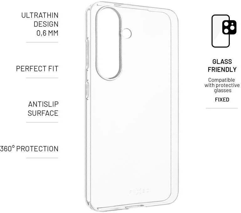 Fixed Story Slim ultratenký TPU gélový kryt pre Samsung Galaxy S25, 0,6 mm, číry