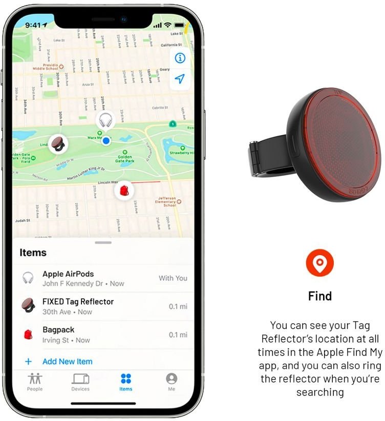 Máte obavu nechávať svoje obľúbené kolo bez dozoru? Tag Reflector ho postráži za vás. Pomocou aplikácie Nájsť na vašom iPhone, iPade alebo Apple Watch vás okamžite upozorní, keď sa bicykel dostane mimo vášho dosahu.Nájde