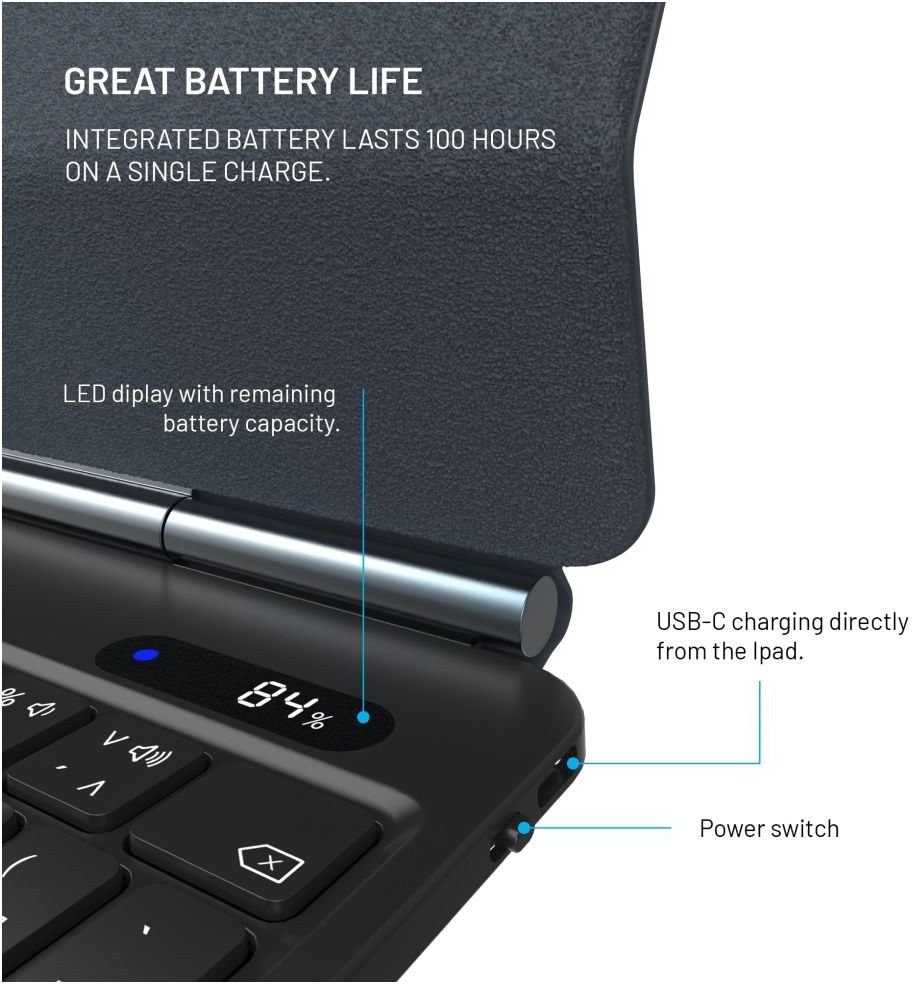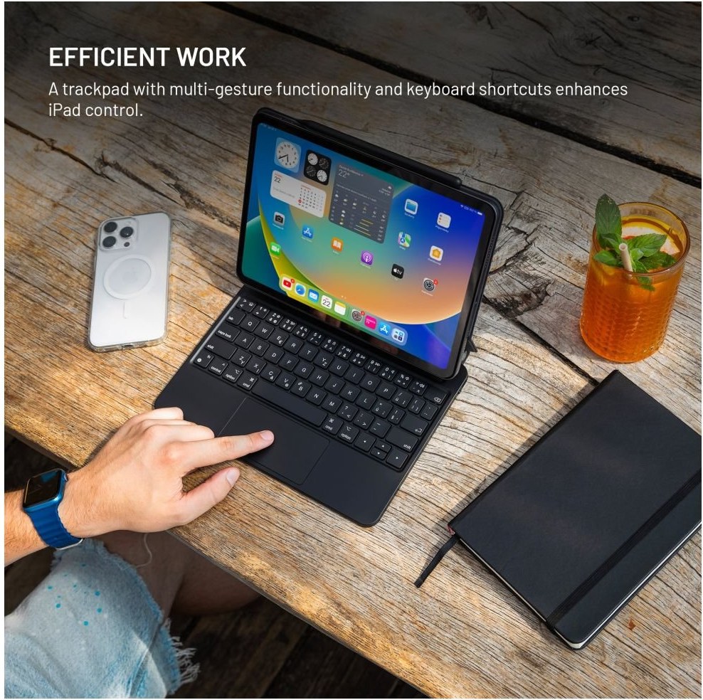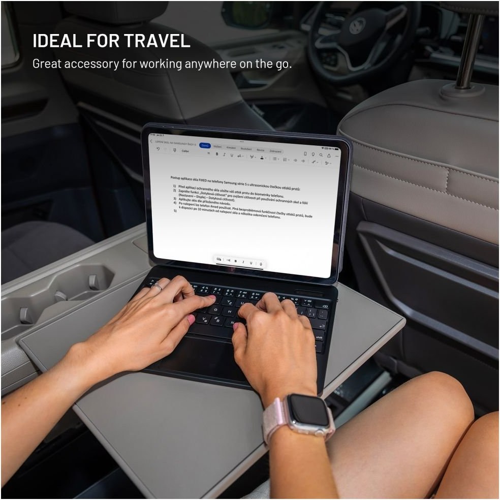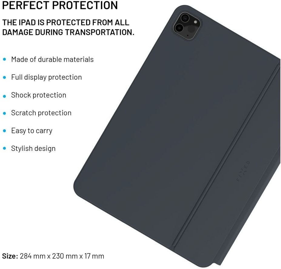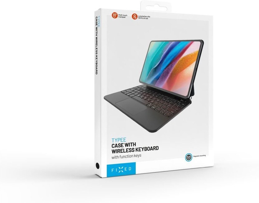 Puzdro FIXED Typee spája bezdrôtovú klávesnicu a bezchybný trackpad spolu s ochranou tabletu iPad. Klávesnica je vybavená päťbodovým multidotykovým trackpadom a funkčnými klávesmi, ktoré podporujú špecifické gestá a klávesové skratky pre iPadOS, aby bol užívateľský zážitok podobný práci na MacBooku. Tablet je možné ľahko prichytiť pomocou magnetov na vnútornú stranu puzdra, čo vloženému zariadeniu zaisťuje ochranu zo všetkých strán. Prepojenie s klávesnicou prostredníctvom Bluetooth zaisťuje pohodlné používanie. Puzdro je vyrobené z kvalitných a ľahkých materiálov, ktoré dodávajú zariadeniu štýlový vzhľad, ale taktiež poskytujú spoľahlivú ochranu pred poškriabaním, nárazmi a iným poškodením. Klávesnica disponuje vysokou výdržou batérie až 100 hodín a je možné ju ľahko dobíjať pomocou USB-C kábla priamo z tabletu. Nastaviteľný uhol naklonenia od 65 ° do 125 ° umožňuje nájsť ideálnu polohu pre prácu alebo sledovanie filmov. Ďalšími praktickými funkciami sú režim automatického uspania a prebudenia (sleep and wake) a informačný LCD displej. Klávesnica s českým rozložením klávesov je kompatibilná s Apple iPad Pro 12.9" (2018-2022), iPad Pro 13" a iPad Air 13". Puzdro s klávesnicou premení váš iPad na ešte výkonnejší a univerzálnejší nástroj, ktorý vás bude sprevádzať na každom kroku.Vlastnosti