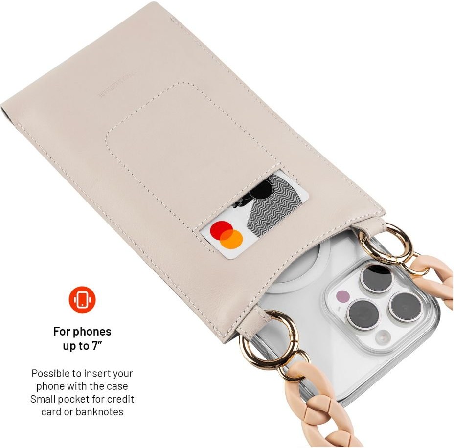 Fixed Venezia kožená taštička cez rameno s vreckom pre 7" mobilné telefóny s béžovou retiazkou, krémová