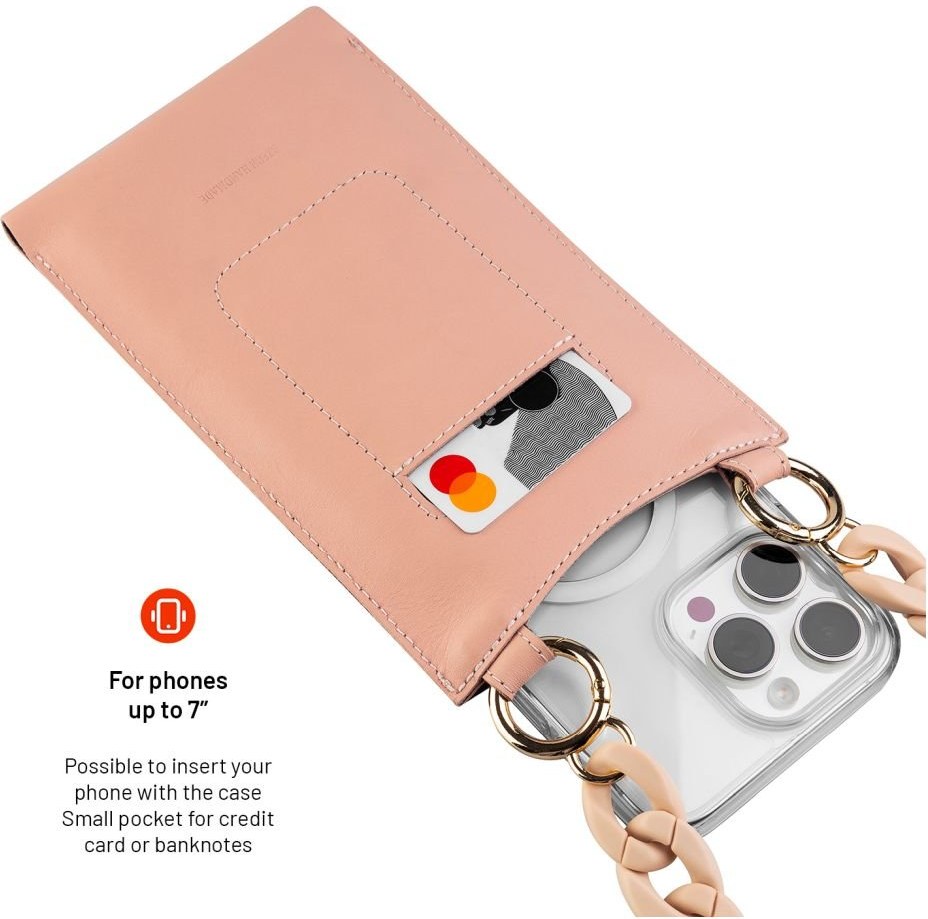 Fixed Venezia kožená taštička cez rameno s vreckom pre 7" mobilné telefóny s béžovou retiazkou, ružová