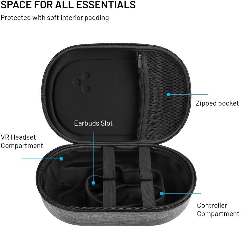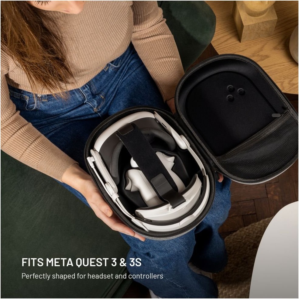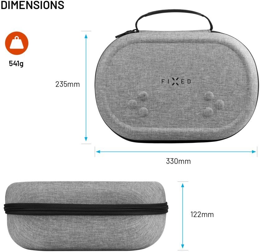 - možnosť použitia puzdra s VR okuliarmi Meta Quest 3/3S samostatne, alebo v kombinácii s prídavným nabíjacím popruhom FIXED VR Power Headstrap