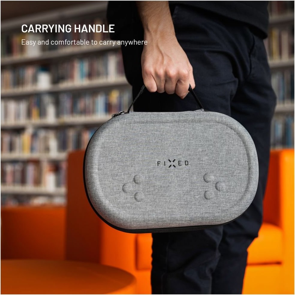 Ochranné puzdro FIXED pre Meta Quest 3/3S spoľahlivo zabezpečí VR headset a ďalšie vložené príslušenstvo. Vnútorná vložka je navrhnutá na mieru VR okuliarom Meta Quest 3/3S, ovládačom Meta Quest Touch Plus, FIXED VR Power Headstrap aj slúchadlám FIXED Game Pods. Navyše je opatrená jemným polstrovaním, ktoré chránia zariadenie pred poškriabaním a poškodením. Vďaka elastickým pásikom zostane vložené vybavenie bezpečne na svojom mieste aj počas prenášania. Vo veku sa nachádza praktické sieťované vrecko na zips, ideálne pre káble alebo iné drobné príslušenstvo. Telo puzdra je vyrobené z pevného materiálu, ktorý odoláva nárazom, opotrebovaniu aj vlhkosti, a vďaka tomu poskytuje spoľahlivú ochranu pri každodennom používaní aj cestovaní. Pre pohodlné prenášanie je puzdro vybavené bočným úchytom.Vlastnosti
