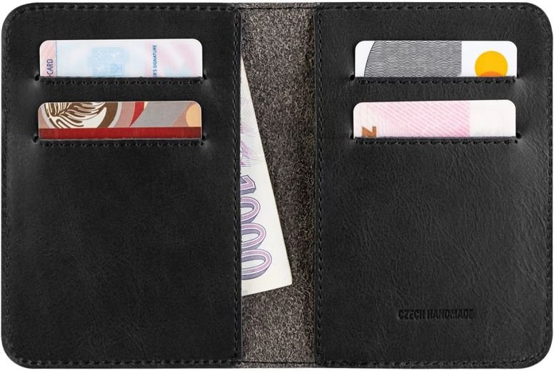 farba čierna, dve veľké vrecká (bankovky, doklady, malý technický preukaz a pod.), dve vrecká na kreditné karty, dve priehradky na minceZobraziť viac