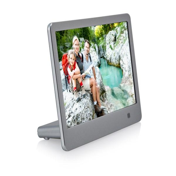 Multifunkční fotorámeček v metalickém provedení zaujme 8" displejem s rozlišením 1280 x 768 pxl. Přehraje fotky, video i hudbu z paměťových karet a flash disků.