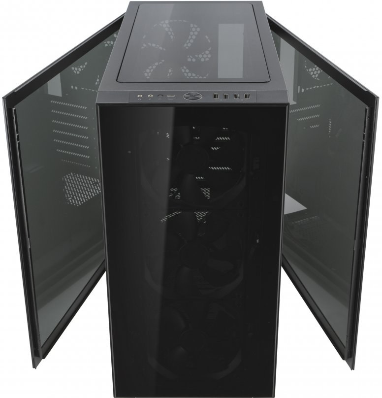 Rozmery skrine sú 543 × 233 × 465 mm a na prednom panely nájdete 2× USB 2.0 a 2× USB 3.0 konektory, kam je možné ľahko pripojiť najrôznejšie periférie, ako sú myši, klávesnice, externé disky a ďalšie zariadenia. Ďalej je tu rýchly USB 3.1 Gen2 typ-C konektor. Nachádza sa tu už tiež tradičná dvojica audio konektorov 3,5 mm jack. Exteriér je tvorený z tvrdeného skla a umožňuje vám tak zaujímavý pohľad na komponenty.