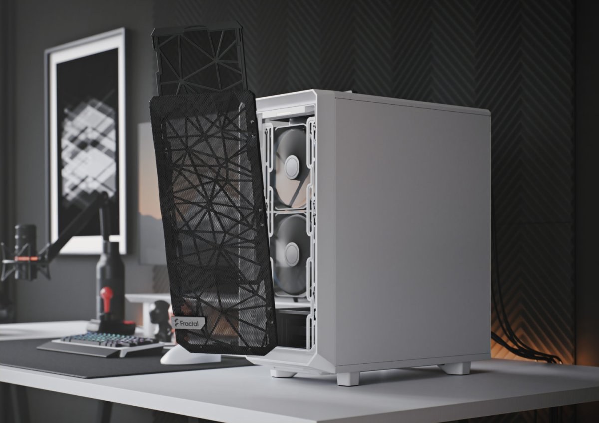 Nový dizajn predného panela so sklopnou odnímateľnou sieťkou a rámom bez upevnenia pre ľahší prístup k držiakom predného ventilátora