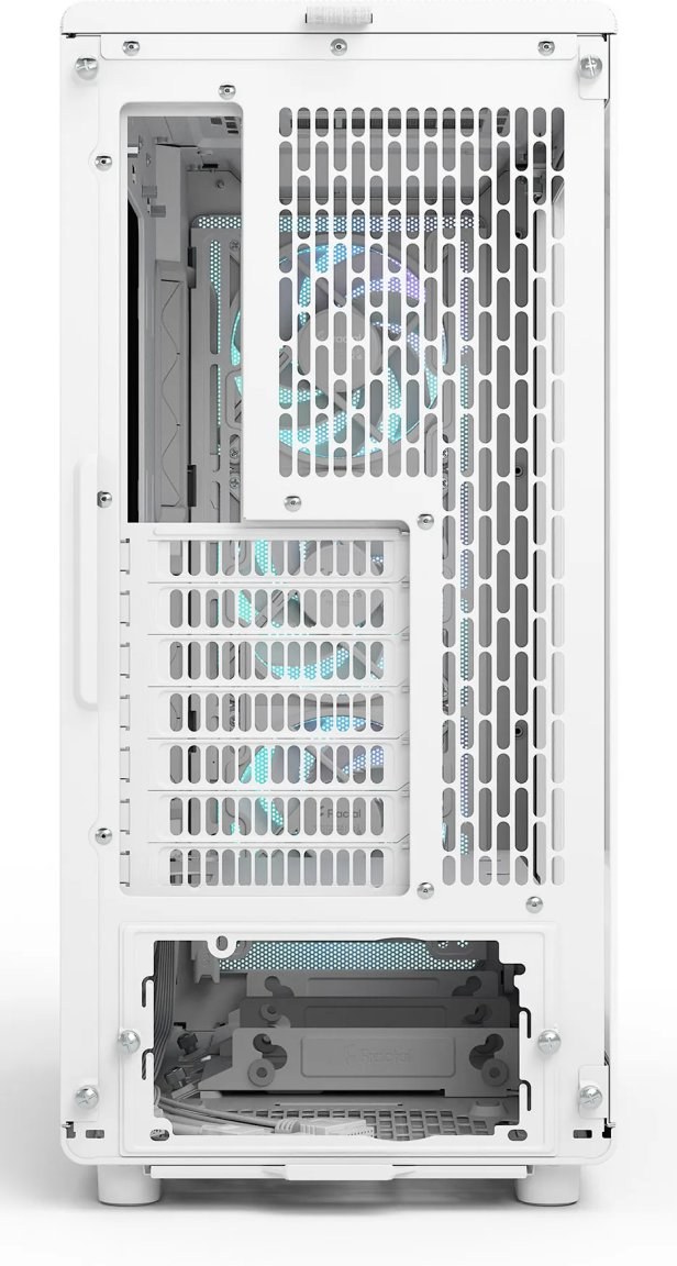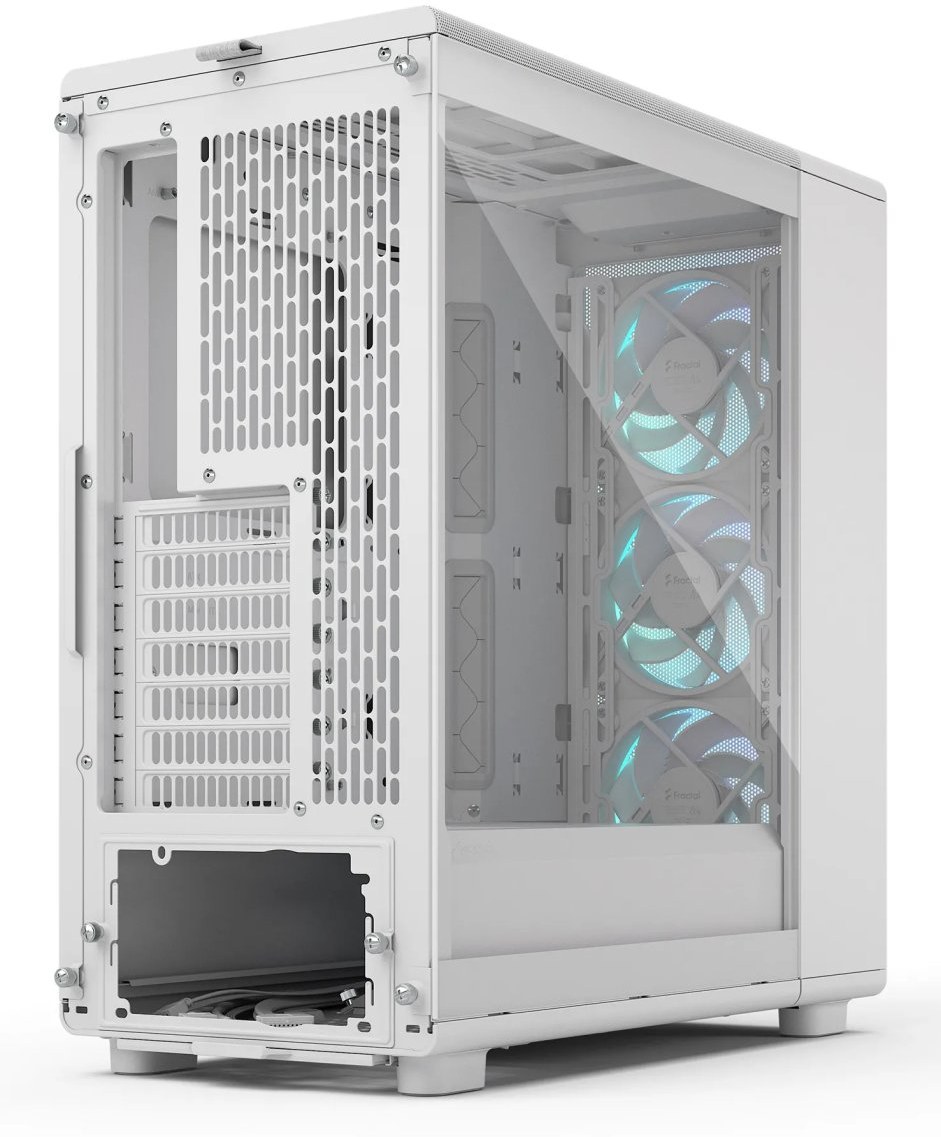 Fractal Epoch ponúka dostatok priestoru pre moderné komponenty. Podporuje grafické karty až do dĺžky 372 mm (alebo 345 mm s predným radiátorom), chladiče CPU do výšky 170 mm a ATX zdroje s dĺžkou až 255 mm. Vnútorné usporiadanie je navrhnuté tak, aby bolo čisté a prehľadné – nechýbajú gumové priechodky na káble, pevné pásky na uchytenie vedenia a 30 mm priestor na vedenie káblov za základnou doskou.