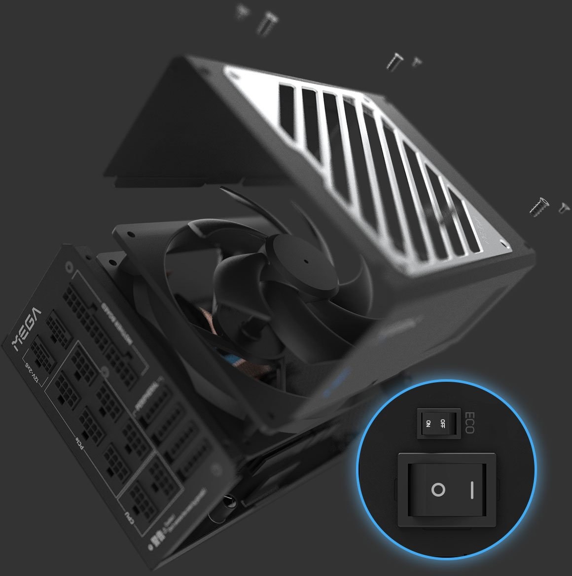 Keď úroveň zaťaženia klesne pod 40 %, aktivuje sa režim Zero RPM po zapnutí ekologického polobezventilátorového spínača. Vďaka tomu ventilátor zostane vypnutý, čo zabezpečuje úplne tichú prevádzku a tichší pracovný priestor. S rastúcimi nárokmi systému sa zapne 135 mm ventilátor s fluidnými dynamickými ložiskami, ktorý zabezpečuje efektívne chladenie a jeho odolná konštrukcia predlžuje životnosť ventilátora. Tento prístup ponúka ideálnu rovnováhu medzi tichým chodom a chladiacim výkonom.OVP - Ochrana pred prepätím