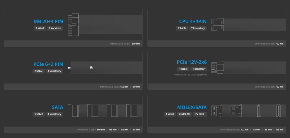 12V-2x6 Nový štandard 12V-2x6 je vylepšenou verziou pôvodného 12VHPWR konektora, ktorý sa používal pri PCIe 5.0 napájaní grafických kariet (napr. RTX 40xx) Ak máš PSU alebo káble s 12VHPWR, nemusíš ich meniť – nový štandard je spätné kompatibilný.