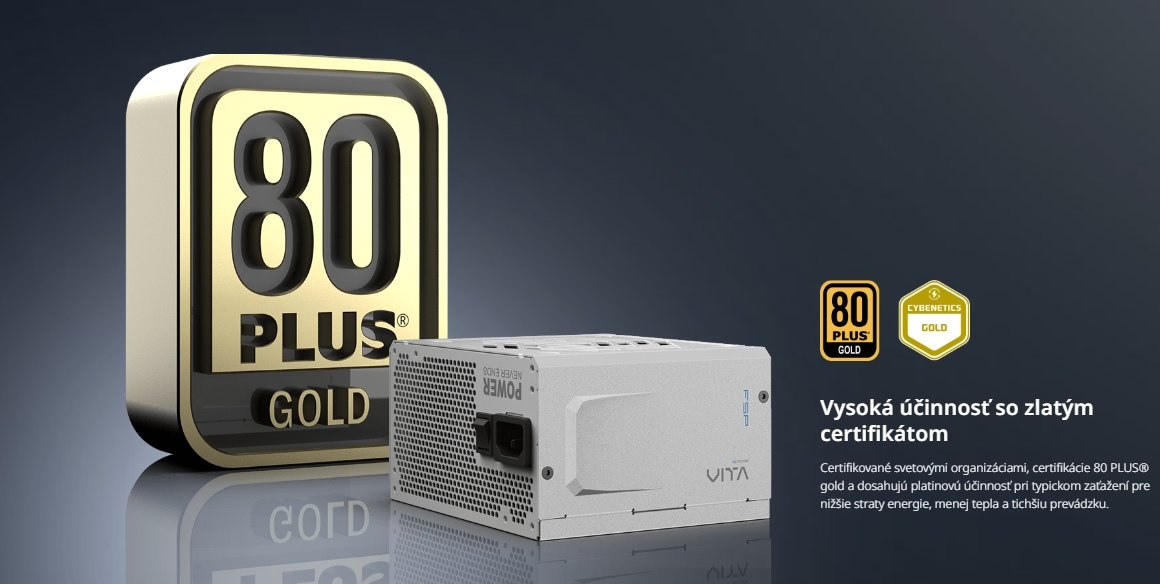 Tieto zdroje, skonštruované pre náročné požiadavky na napájanie zajtrajška, ponúkajú maximálnu podporu celkového výkonu podľa špecifikácií ATX 3.1 a PCIe Gen 5.1, čím zabezpečujú špičkový výkon aj pri budúcich hardvérových aktualizáciách.Vysoká účinnosť so zlatým certifikátom