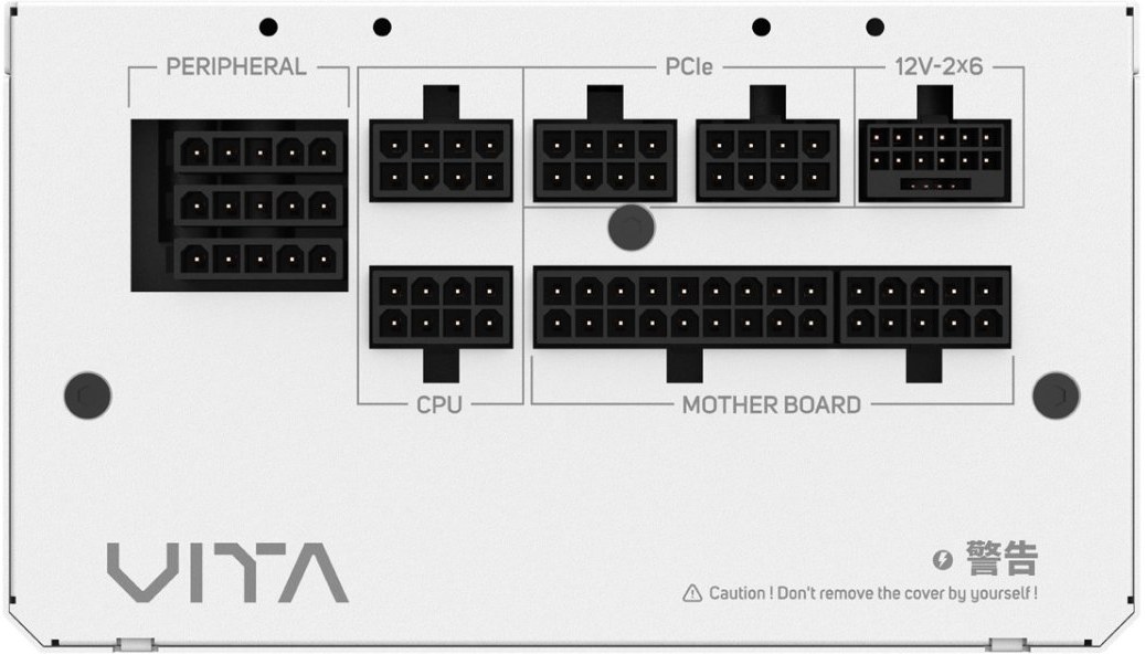 Biela verzia VITA GM sa vyznačuje úplne bielymi modulárnymi káblami a káblovými konektormi, ktoré vytvárajú ultra štýlový, čisto biely estetický vzhľad. Jeho plne modulárny dizajn kabeláže uľahčuje inštaláciu napájacieho zdroja a umožňuje používateľom používať iba potrebné káble, čo zlepšuje prúdenie vzduchu a znižuje neporiadok v systéme.Rozmery kompaktného zdroja: 140 x 150 x 86 mm