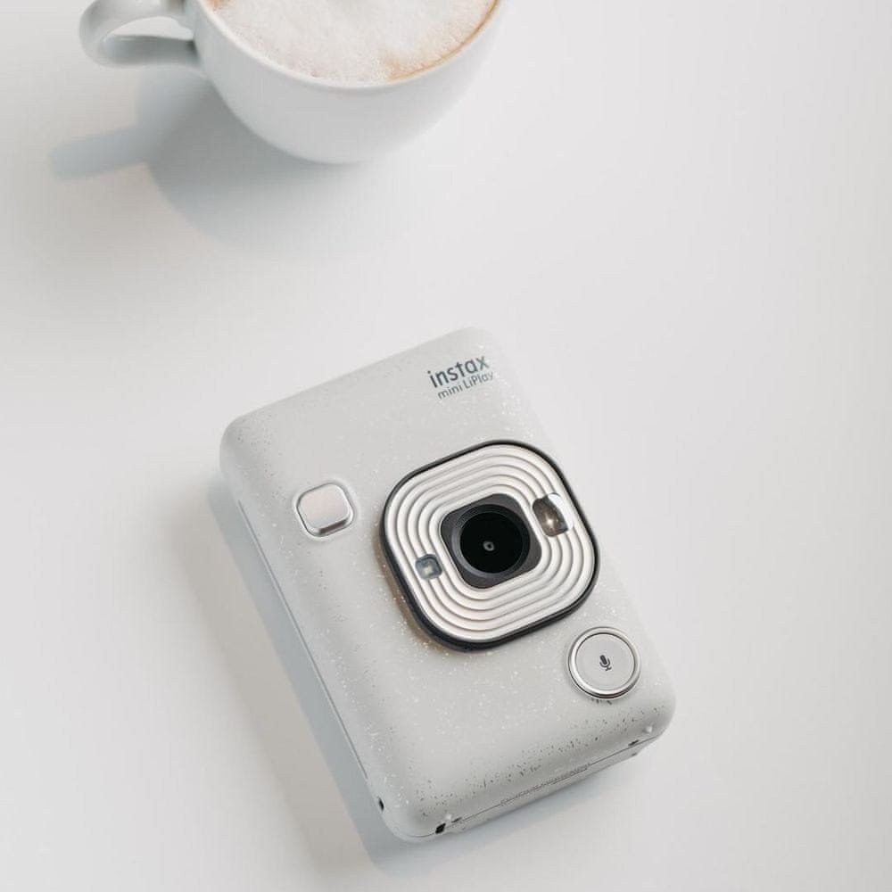 Instax Mini LiPlay je najmenší a najľahší instantný fotoaparát s hybridnou technológiou. Môžete s ním fotiť, fotky ukladať do pamäte alebo tlačiť. To ale nie je všetko. Vďaka mobilnej apke môžete tlačiť fotky priamo z mobilu alebo ho použiť ako diaľkové ovládanie. Popri originálnom dizajne ponúka Instax Mini LiPlay aj ďalšie funkcie ako je nahrávanie zvuku a možnosť editácie snímky.Instax Mini LiPlay je vybavený zadným LCD displejom o veľkosti 2,7 na ktorom je možné prezerať si fotografie a vybrať tie, ktoré vytlačíte. Sú dostupné aj funkcie pre editáciu ako úprava jasu a šesť filtra napr. sépia alebo ciernobiely film.