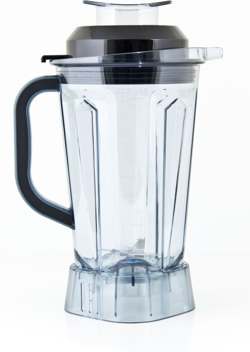 Steny základnej nádoby 2,5 l sú vyrobené z tritanu, špeciálneho odľahčeného zdravotne nezávadného (BPA free) a hlavne vysoko odolného materiálu. Tichší chod sme poistili odhlučnením motorovej jednotky. Nádoba hladko dosadá na základňu s kovovými prevodmi. Šestica nožov zo super kvalitného materiálu a v ideálnom tvare dokáže jemne nadrviť skutočne všetko. Potrebujete doliať trochu vody počas mixovania? Žiadny problém! Vďaka malému viečku sa vám to podarí bezpečne aj za chodu. Po použití môžete nádobu buď prepláchnuť alebo vložiť do umývačky.