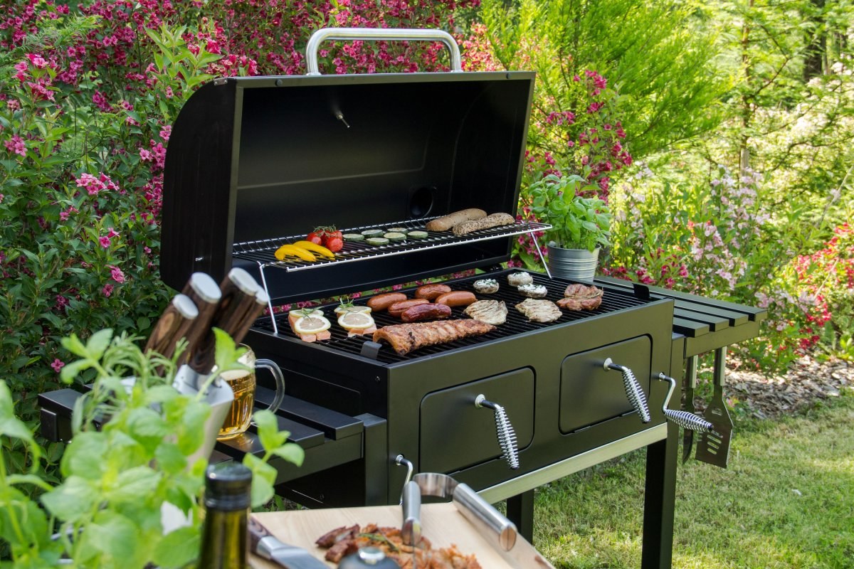 poctivý gril s dvoma kúreniskami s reguláciou výšky, vstavaným teplomerom, odkladacími plochami a pojazdom