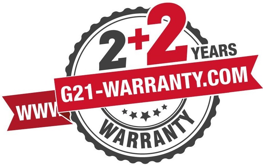 Za kvalitu tohto grilu na drevené uhlie ručíme 4 roky. K štandardnej záručnej lehote 2 roky získate registráciou na webe http://g21-warranty.com predĺženie záruky o ďalšie 2 roky.
