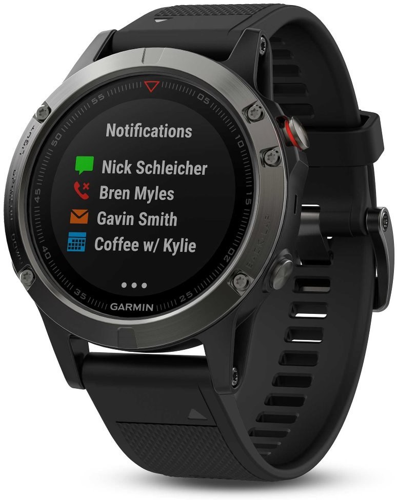 Upozornenie na emaily, SMS, hovory a iné priamo na vašom zápästí. Fénix 5 prijíma bezdrôtový signál s vášho smartfónu a umožňuje zobraziť upozornenia na displeji hodiniek a zároveň ich ukladá na neskoršie prečítanie. Medzi ďalšie funkcie patrí automatický upload aktivít na Garmin Connect alebo funkcia Live Tracking.