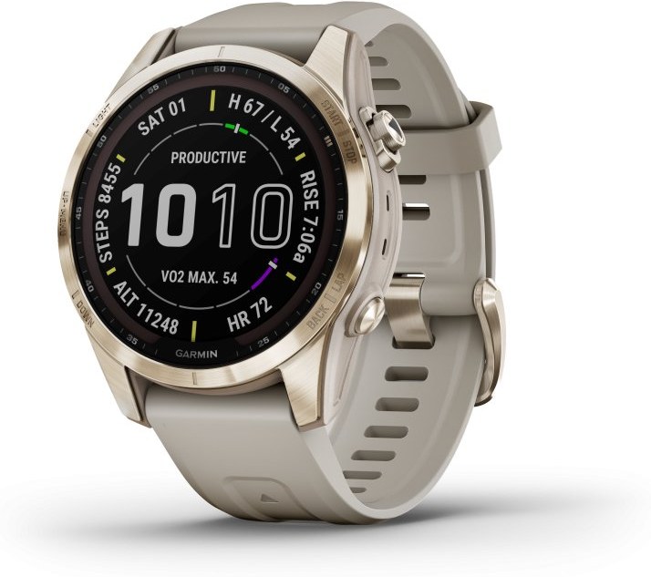 Garmin fenix 7S Sapphire Solar, Cream Gold Titanium, Light Sand Band
