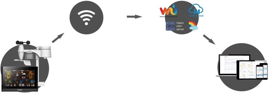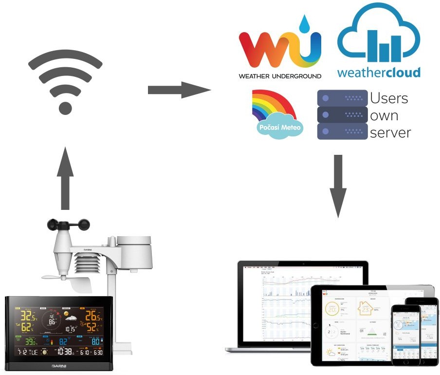 Hlavná jednotka je osadená vysokorýchlostnými procesormi, ktoré analyzujú namerané hodnoty meteorologických veličín a tie pomocou miestnej Wi-Fi siete v reálnom čase nahráva na zvolený server/servery Weather Underground a Weathercloud, prípadne na vlastný server užívateľa, alebo na server PocasiMeteo.cz. Zasielanie dát je možné na všetky servery súčasne.