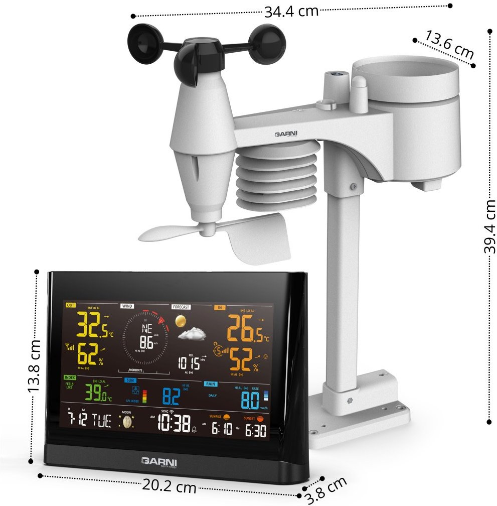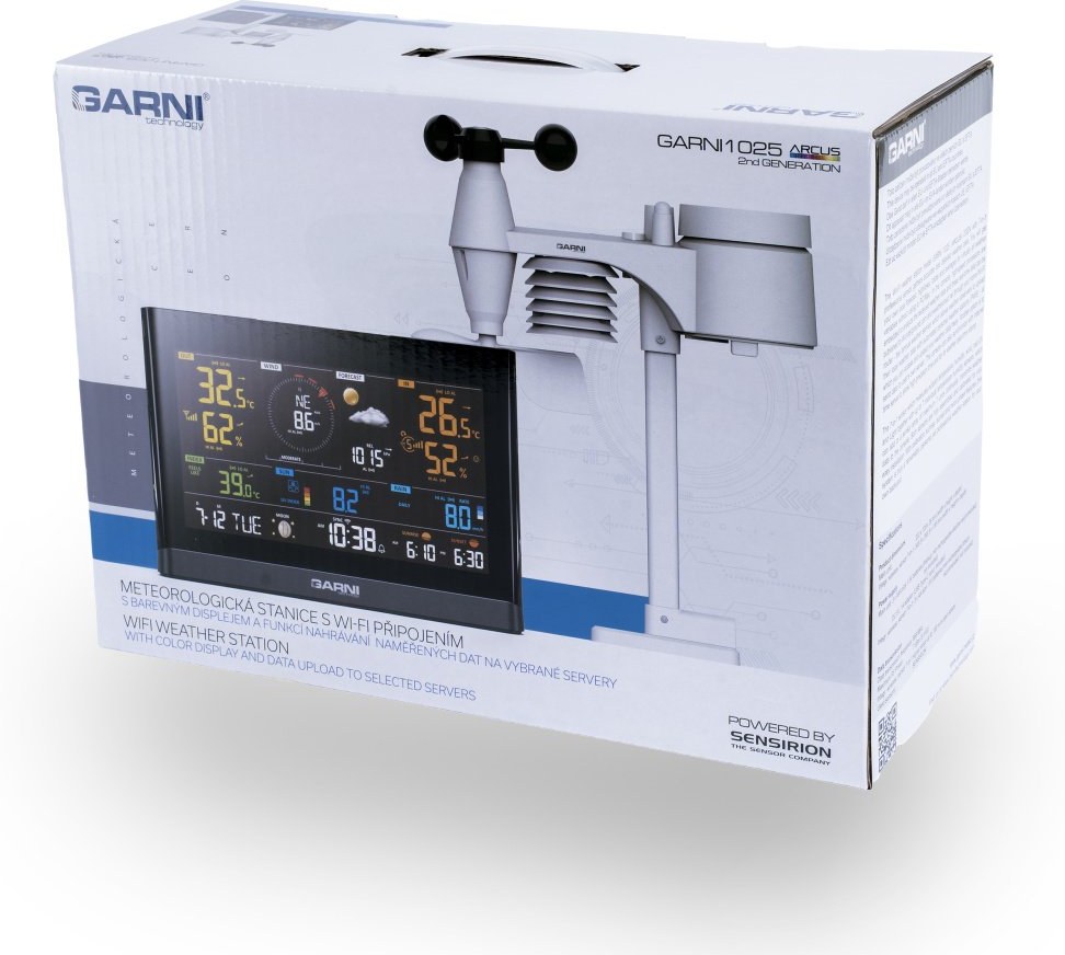 Wi-Fi meteorologická stanica model GARNI 1025 Arcus 2GEN s integrovaným bezdrôtovým čidlom 7-v-1, ktorá je vybavená mnohými funkciami zhromažďuje presné a podrobné údaje o počasí. Integrovaný bezdrôtový snímač pracuje na frekvencii 868 MHz a meria vonkajšiu teplotu a relatívnu vlhkosť, rýchlosť a smer vetra, dažďové zrážky, barometrický tlak, UV index a intenzitu slnečného žiarenia. Výrobok používa vysoko presné švajčiarske čidlá SENSIRION a umožňuje kalibráciu niektorých meteorologických veličín.