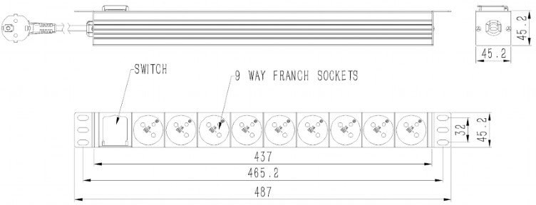 19", napájací panel 230V, formát 1U, 9 portov, čierna farbaZobraziť viac