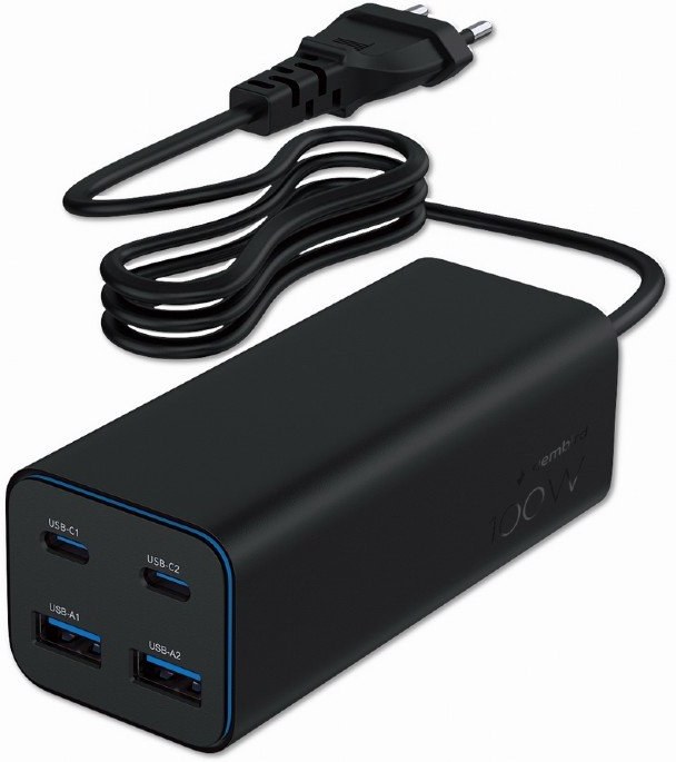 Gembird GaN nabíjačka, 2xUSB- C/2xUSB, 100W