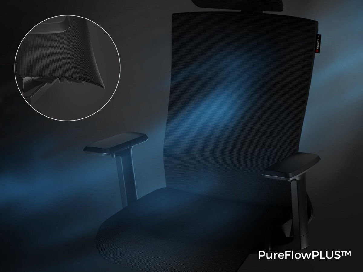 Už vás nebaví kožené poťahy a hľadáte kreslo, ktoré vám poskytne plnohodnotné odvetrávanie? Operadlo a opierka hlavy kresla sú vyrobené zo sieťovaného, priedušného materiálu PureFlowPLUS™. Ten sa nielen ľahko čistí, ale je tak odolný a pružný, že z neho bolo vyrobené aj celé sedadlo. Neobsahuje žiadnu penu, ktorá by sa časom mohla pokrčiť a ovplyvniť vaše držanie tela. Zabudnite na to, že sa stolička príliš zahrieva, a sústreďte sa na to, čo je naozaj dôležité.