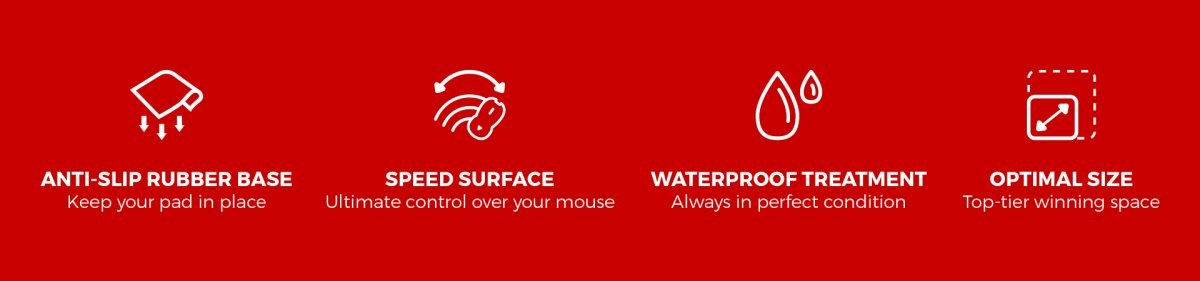 - Vysoko kvalitná herná podložka pod myš.- Rýchla horná vrstva zaisťuje hladký sklz pre rýchle pohyby a okamžitý pohyb myši.