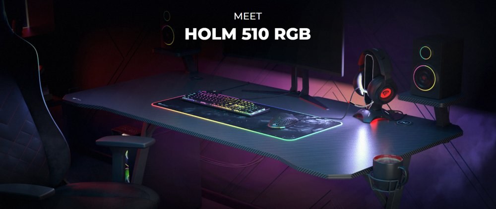 Profesionálni hráči vyžadujú pokročilé riešenia. Preto je stôl Holm 510 RGB vybavený radom vyhradených políc a držiakov, ktoré sú odnímateľné a umožňujú inštaláciu na pohodlnom mieste. Police na reproduktory, držiaky na slúchadlá a šálku ušetrí miesto na doske a dokonale ho upraví. Pod stolom sa nachádza organizér káblov, vďaka ktorému ostanú všetky káble schované a vy budete mať čistý priestor pre hru.