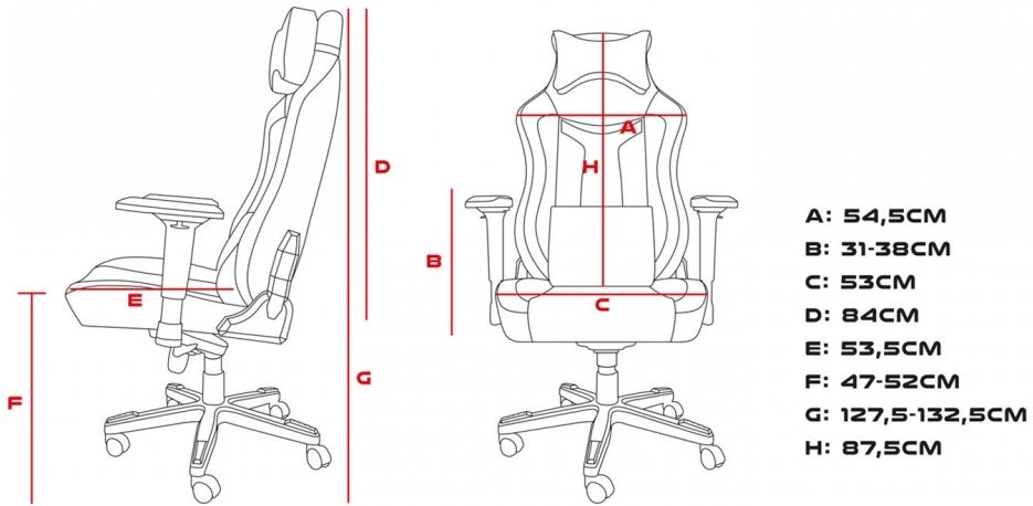 Výšku sedadla je možné upraviť tak, aby sa dokonale prispôsobila vašej výške. Kreslo je vybavené 4-smerne nastaviteľnými podrúčkami. Dostanete tiež možnosť zmeny uhla sklonu operadla až do 165 ° - po hodinách hrania sa môžete pohodlne natiahnuť.